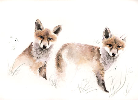 Le travail avance sur plusieurs semaines… ce sera donc une aquarelle mûrement réfléchie. Un travail ciselé, le risque est alors d’en faire trop… et justement la question se pose à propos de la patte du renardeau de droite… hésitation, réflexion… je décide qu’elle manquerait. Une fois peinte, elle devient une évidence… pour le fond, en sera-t-il de même ?
